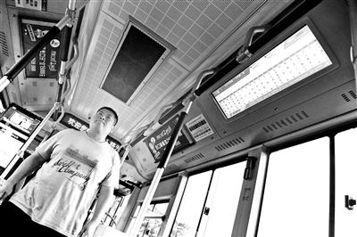 41路公交车上,新式电子显示屏正在服务乘客摄影/本报记者 黄亮