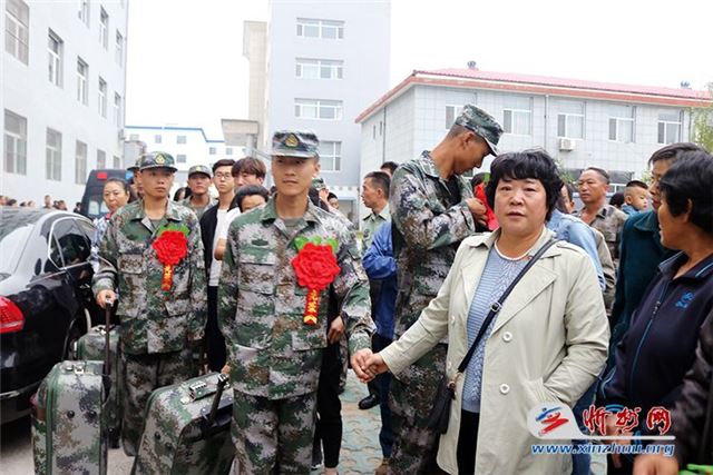 新兵回头难舍父母情