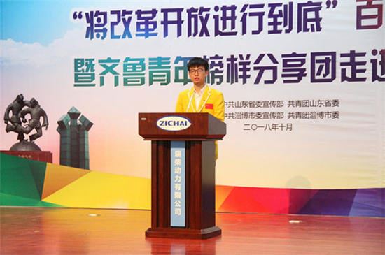 10月25日,由省委宣传部、团省委主办的“将改革开放进行到底”百姓宣讲暨齐鲁青年榜样分享团走基层活动在淄博成功举办,齐鲁青年榜样分享团先后走进山东工业职业学院和淄柴动力有限公司进行宣讲。市委宣传部副调研员王宝霞、团市委副书记殷启迪等出席分享会,山东工业职业学院部分学生及淄柴动力有限公司青年职工近1000人参加分享活动。