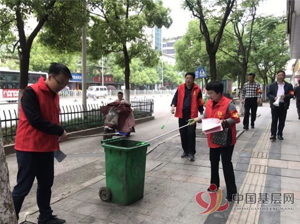 有的干部职工在带湖路主干道开展卫生整治;有的干部职工在带湖路社区管辖区内发放健康素养知识、创国卫应知应会手册和扫黑除恶宣传单,并走访了50余家商户宣传相关知识。