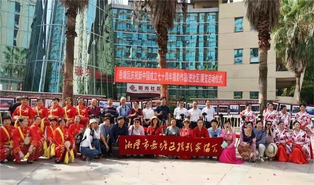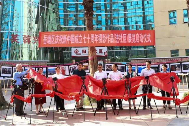 9月20日,在喜迎新中国成立70周年之际,由湘潭市岳塘区文联、岳塘区文化旅游广电体育局主办,岳塘区摄影家协会承办的庆祝新中国成立七十周年摄影作品进社区展览启动仪式在岳塘区宝塔街道阳光社区隆重举行。岳塘区委组织部副部长邹建勇,岳塘区文联主席郭建忠,岳塘区民政局副局长郭海燕,岳塘区民政局社会组织股股长蒋伟治,岳塘区摄影家协会主席殷成,岳塘区摄影家协会党支部书记赵练平,宝塔街道党工委委员、人大联工委主任张远芳,宝塔街道党工委委员、办事处副主任吴彦,阳光社区党支部书记赵玲,中摄协会员、军旅生活展览作者齐成林等出席开幕式。活动现场锣鼓喧天,载歌载舞;参展的一幅幅作品,精彩瞬间,视觉盛宴;摄影师和摄影爱好者们“长枪短炮”,济济一堂;大家在一幅幅作品前驻足凝视……好一派太平盛世的繁华景象!