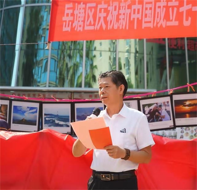 岳塘区文联郭建忠主席在讲话中说,这次进社区摄影活动和展览,在湘潭尚属首次。通过一幅幅精美照片,让我们深切地感受到了历史悠久、山灵水秀、四季如春、美不胜收的新岳塘。接着,他宣布“岳塘区庆祝新中国成立七十周年摄影作品进社区展览正式开始!在仪式现场,五彩纷呈的礼花齐放,邹建勇、郭建忠、郭海燕、殷成、赵练平、张远芳、吴彦、赵玲、齐成林等领导和老同志共同为展览揭幕!