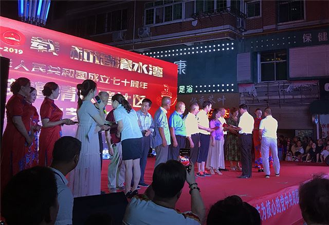 9月27日晚,鹤城区红星街道清水湾社区在辖区内举办庆祝中华人民共和国成立70周年群众文艺演出,并对社区优秀网格员、优秀楼栋长及平安文明家庭进行了表彰。