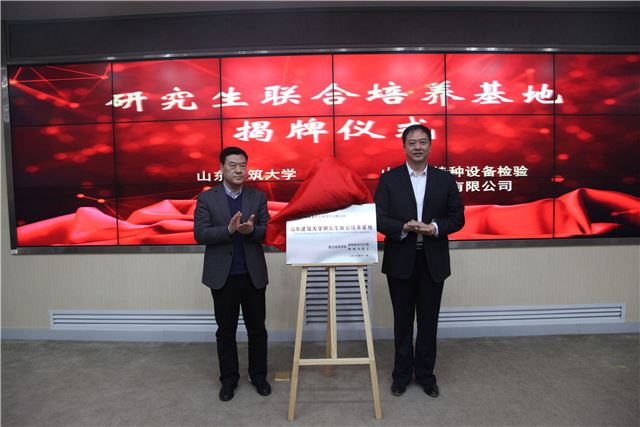 12月27日,山东省特检院与山东建筑大学“研究生联合培养基地”揭牌仪式在济南隆重举行,山东特检集团总经理蔡盛东、副总经理范晓斌、特检院公司总经理张峰、山东建筑大学副校长傅传国、研究生处长赵继龙、材料学院书记李瑞学等出席仪式。