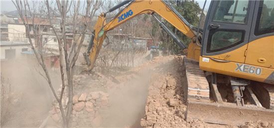 挖掘机在拆除残垣断壁