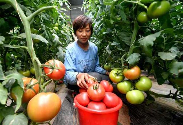 榆林市靖边县东坑镇群众在采摘西红柿 刘潇摄