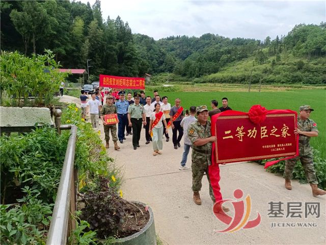 8月28日,一阵阵铿锵的鼓乐声为白溪镇大熊村带来了喜悦。县人民武装部政委贺雪峰,县人民政府副县长刘志军,南部战区空军某部政治工作处干事段虎一,县退役军人事务局党组书记、局长袁名光,县人民武装部政工科科长彭澎,白溪镇党委书记邬永兵一行为荣立二等功的现役军人刘炬家人送上喜报与奖励金。村民们奔走相告,沿着村道迤逦报喜,小小山村洋溢着浓郁的崇军拥军之情,沉浸在一片喜庆和自豪之中。