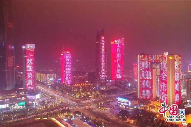 英雄们平安归来,沿途收到了数万市民的夹道欢迎。东莞大道国贸商圈楼宇也同步亮灯,向“最美的逆行者”致敬。