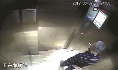 老人在电梯内吸烟