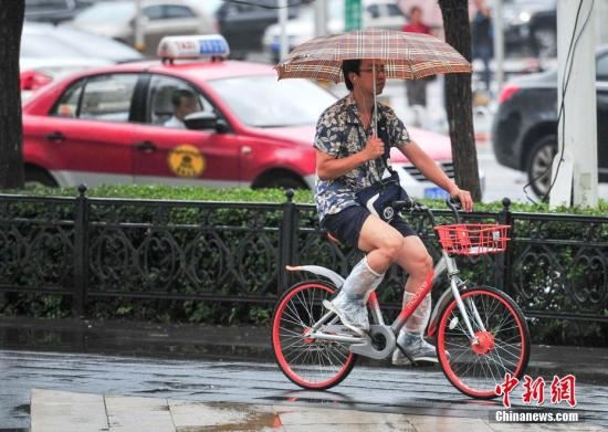 资料图:市民全副武装在雨中出行。中新社记者 于海洋 摄