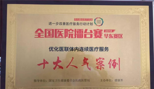 国家卫健委医政医管局为深入推进进一步改善医疗服务行动计划(2018-2020年),组织改善全国医疗服务行动全国医院擂台赛。全国1200多家医疗机构提交了3055个案例,该院案例《抓联盟、强服务、促发展——一份来自山区的医联体实践报告》,经过媒体投票、专家评选,成为华东赛区“十大人气案例”,同时还获得“十大价值案例提名”。