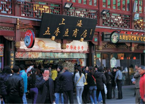 一早,大红灯笼高挂的南京西路老字号王家沙总店内已是人头攒动。伴随着游客的问询声,上海老城厢的豫园商城,南翔馒头店、豫园梨膏糖、乔家栅糕团也在晨曦中缓缓苏醒……