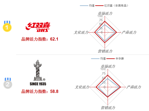 至今,40毫米乒乓球、40+新材料乒乓球国际标准,采用的都是红双喜技术标准作为蓝本制订。截至目前,“红双喜”参与制定的国家标准、行业标准高达17项之多,“红双喜”从做产品、做品牌,跨入到制定国际标准的一流企业。另一方面,李宁集团在08年之后的资本注入,利用明星造市、赛事推广,走专业高端路线,为其塑造了“精”的形象,处于专业市场却有不错的市场活力表现。