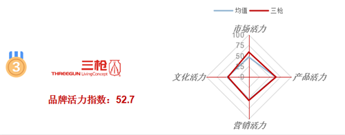 尚晓鸣认为,“三枪展现出较佳的市场活力表现,与它专注于市场、靠产品的质价比占据用户脑海(此次研究中,再购意愿在行业中仅次于回力,高达71.7%)有很大关系,也与渠道多样化带来的购买方便(线下社区店、商场专柜等,线上各大主流平台旗舰店)有关。”