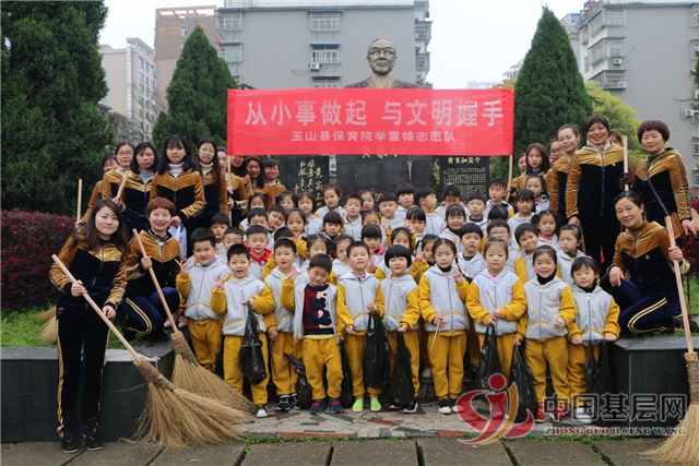 中国基层网玉山3月26日消息(通讯员 章洪明 占丽)三月春风吹大地,雷锋精神代代传。为进一步传承弘扬雷锋精神,加强养成教育,促进幼儿文明环保意识“内植于心,外践于行”,鼓励孩子“从小事做起,从细节起步”, 3月26日上午,玉山县保育院组织学雷锋志愿队到黄家驷公园开展了以“从小事做起,与文明握手”为主题的捡垃圾活动。该院党支部书记带领部分党员、教师和大班幼儿共50多人参加了本次活动。