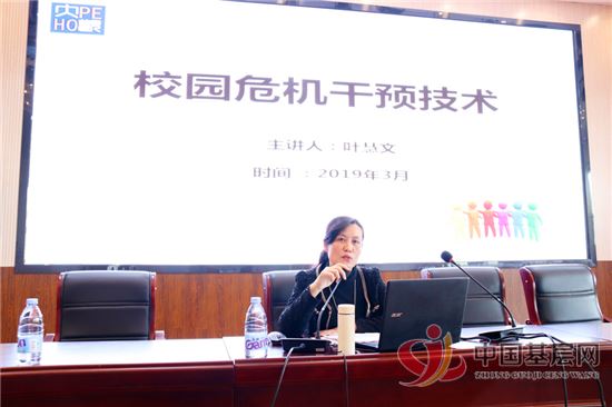 在面向教师开展的“校园危机干预技术”讲座中,叶慧文教授结合自身专业知识及多年的学生工作经验,从近年来频发的校园危机事件着手,分析了我国当前学生心理健康现状。同时,就如何识别学生心理危机,如何处理学生因创伤事件、自卑性格或者精神障碍而导致自杀问题进行了深入浅出的分析和讲解。