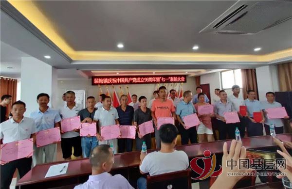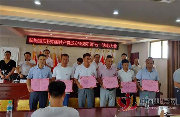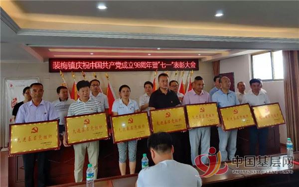 先由镇党委委员、组织员曹云峰宣读了《中共裴梅镇委员会关于表彰优秀共产党员、优秀党务工作者和先进基层党组织的决定》,全镇共表彰优秀共产党员60名,优秀党务工作者8名,先进基层党组织7名;以及获市委表彰的优秀共产党员1名和先进基层党组织1个;获县委表彰的优秀共产党员7个、优秀党务工作者2个、先进基层党组织3个。
