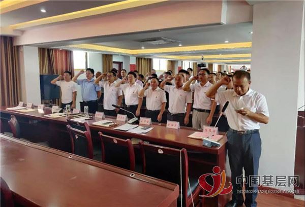 举行重温入党誓词仪式,在镇党委委员、组织员曹云峰的带领下,与会党员全体起立,举起右手,面对党旗庄严宣誓,强化党员党性观念,警示党员牢记入党初衷,不忘初心,为党的事业奋斗终生。