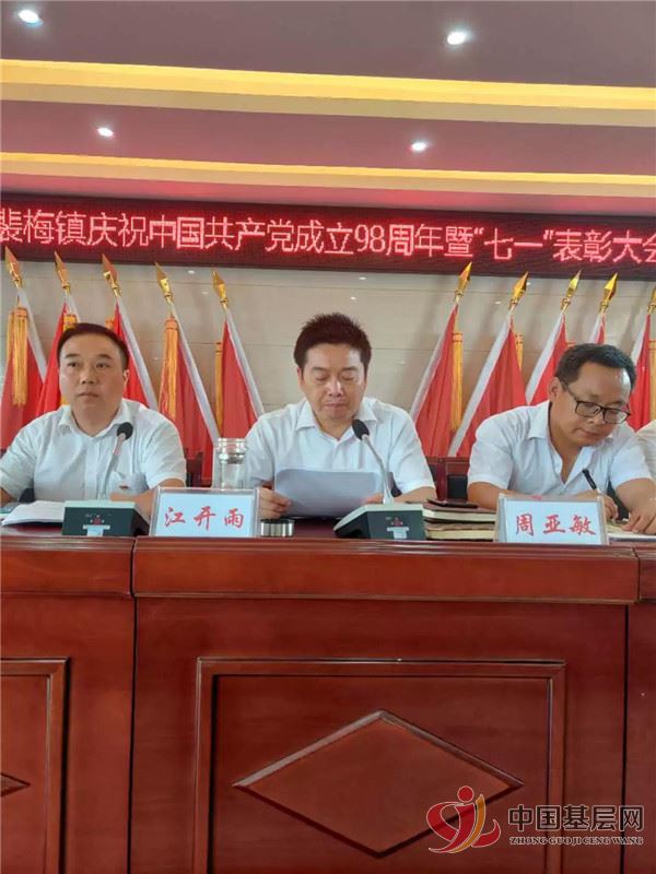 中国基层网万年7月4日消息(通讯员 曹云峰)7月2日上午,万年县裴梅镇召开庆祝中国共产党成立98周年暨“七一”表彰大会,各村第一书记、村(居)书记、组织委员、受表彰的优秀党务工作者、优秀共产党员代表、镇机关党支部党员共计100余人参加会议。镇党委副书记叶寒阳主持会议。