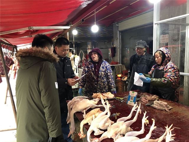 湘潭市市场监管局副局长马建中带队检查畜禽类店面索证索票情况