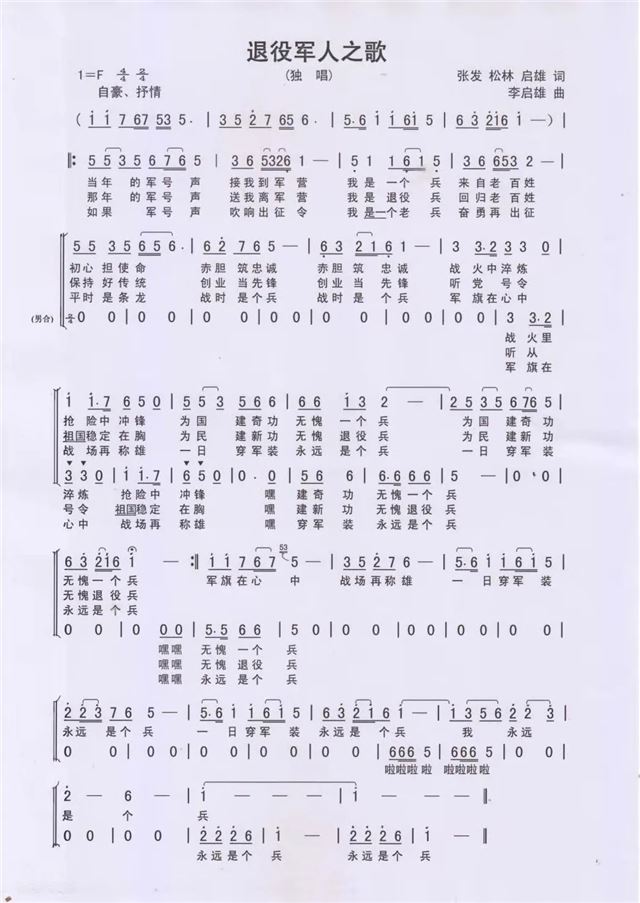 海南岛,是祖国卧在南太平洋上的一艘永不沉没的航空母舰,也是祖国人民的后花园。在疫情防控期间,由海南三名退役军人张发(某师政委),鹿松林(基建工程兵某部新闻干事),李启雄(某边防局文工团原团长)共同作词,李启雄作曲的《退役军人之歌》,在海南悄然唱响。