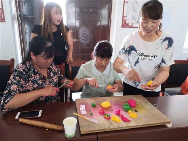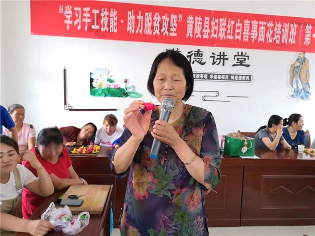 为了积极应对新冠肺炎疫情及霜冻、冰雹等自然灾害对农业生产带来的不利影响,切实稳定群众收入,助力打赢脱贫攻坚战、提高妇女文化生活,贡献巾帼脱贫力量,县妇联安排,阿党镇妇联积极组织在阿党镇河堤贫困村主办面花培训,参加本次培训的有全镇面花爱好者、贫困户、河堤村村民、9个村妇联主席,共计60余人。