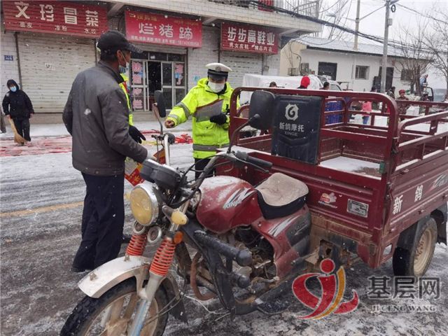 宣传民警通过向群众讲解冰雪天气道路通行常识,发放“平安春运交警同行”主体宣传单等方式,提醒广大交通参与者自觉做到“守法规知礼让、安全文明出行”。