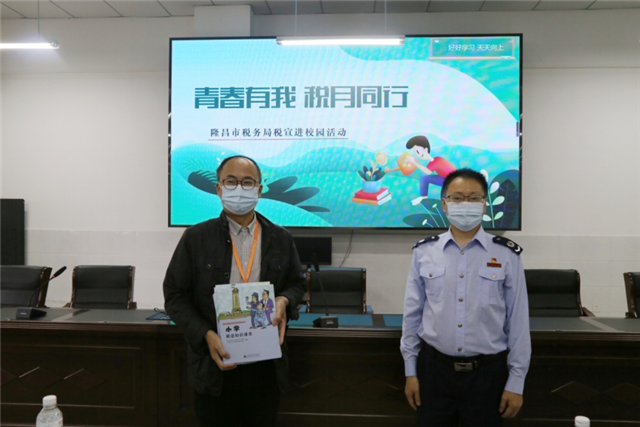 活动最后,隆昌市税务局向学校捐赠《小学税法知识读本》,并为同学们发放了活动纪念文具。隆华路小