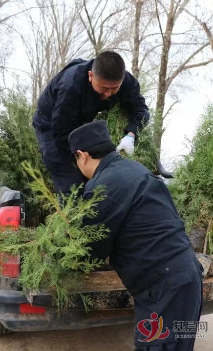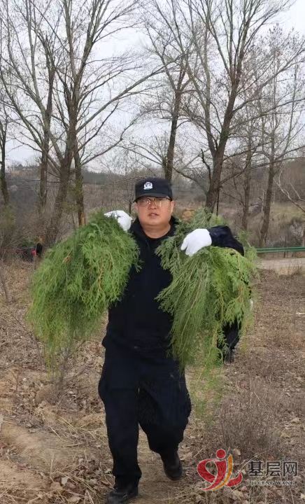 大家经过几个小时的共同努力,大家共植树200余棵,一棵棵新栽种的松柏树苗昂首挺立,绿意盎然,在暖风吹拂下展现出勃勃生机。