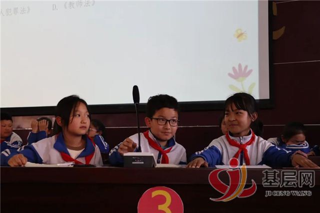 随后,本次法治知识竞赛正式拉开帷幕。竞赛设置了必答题、抢答题、加赛题以及观众互动四个环节。未检检察官设计了50道场景应用型法治题,内容涉及校园欺凌、高空抛物、家庭教育、强制报告制度、个人信息保护、民法典等未成年人法治常识的方方面面。竞赛过程精彩纷呈、高潮迭起,必答题环节选手们认真仔细、准确作答;抢答题环节选手们眼疾手快、争先恐后;观众互动环节应援队伍热情高涨,答题助力。整个竞赛过程同学们精神饱满,团结协作,奋勇争先,将浓厚的法治学习比拼氛围推向一个又一个高潮。未检检察官也将每个小问题化作法律知识点,给孩子们进行延伸讲解,让孩子们更清晰、更深刻地理解题目设定的目的和意义,让孩子们知其然,更知其所以然。经过一番激烈的竞赛,最终评选出三等奖、二等奖和一等奖,同学们获得了心仪的奖杯、奖牌和法治小奖品。