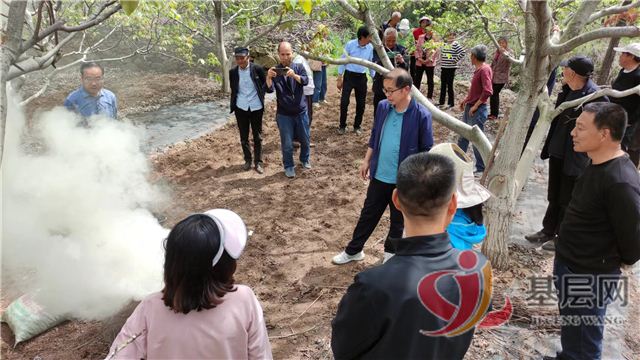 在柏峪村的核桃示范园内,西农大核桃专家许喜明及核桃中心技术员结合核桃生产实际,现场教学,通过通俗易懂的语言和现场实际操作,分别讲解了核桃晚霜冻害预防、黑斑病腐烂病等常见病虫害防治、施肥、高接改优及嫁接后管理等技术,重点就新型简易烟熏防霜冻桶的使用、烟熏桶布点、燃料选择等技术要点进行了详细的讲解示范,并现场解答了果农提出的问题。现场还免费为群众发放了核桃病虫害防治药物。