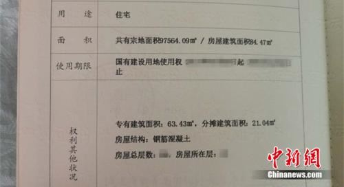 房本上写着房屋建筑面积、专有建筑面积和分摊建筑面积。中新网记者 邱宇 摄