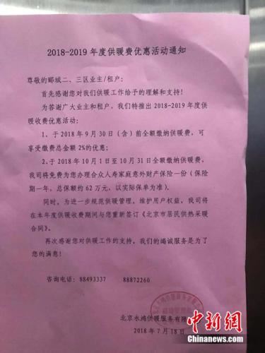 某小区内张贴的收取供暖费通知。中新网孙悦 摄