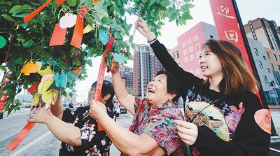 9月15日,北京大兴国际机场安置房回迁工作正式启动,2万余名回迁村民将陆续喜迁新居。该项目是保障北京大兴国际机场顺利建设的重要工程,共136栋住宅楼,累计建设1.5万套房屋。项目在设计施工中贯彻“绿色建筑、慢行交通、智慧社区、配套完善、传承历史、留住乡愁”等理念,让回迁群众对幸福新生活的期盼变成现实。图为刚刚办完入住手续的北京市大兴区榆垡镇南黑垡村的回迁村民金玉芬一家正将心愿卡挂上许愿树,希望日子越来越红火。