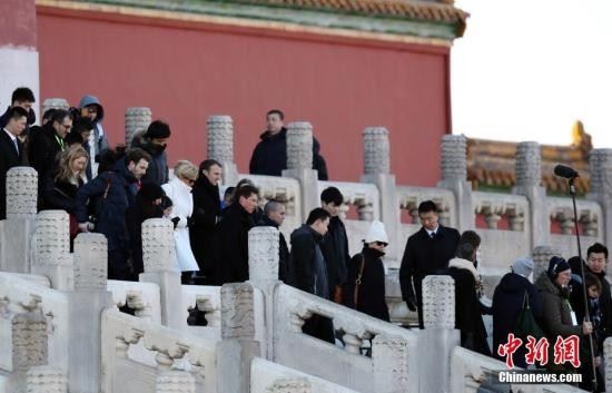 1月9日上午,正在中国进行国事访问的法国总统马克龙偕夫人布丽吉特一同在北京参观故宫。 中新社记者 卞正锋 摄
