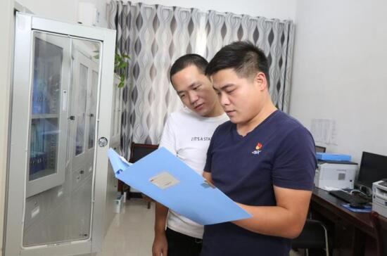 河南省信阳市淮滨县广播电视台驻信阳市淮滨县三空桥乡麻东村第一书记汪俊武(右)