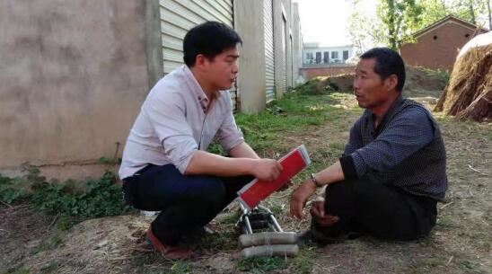 信阳市淮滨县三空桥乡麻东村第一书记汪俊武向村民了解情况