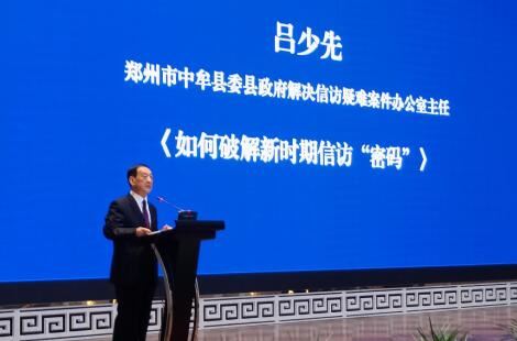 在主题研讨会发言上,中牟县解难办主任吕少先围绕《如何破解新时期信访“密码”》为主题,从信访工作不全在于条例法规,而在于方法措施;信访工作不全在于接访督办,而在于认真落实;信访工作不全在于维控看管,而在于解决矛盾,处理问题;信访工作不能“单打一”,要用“组合挙”等,作了精彩发言。