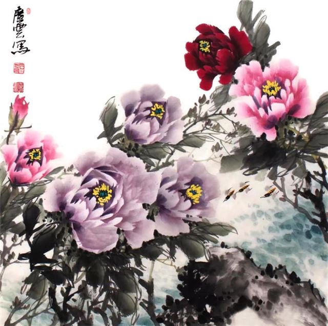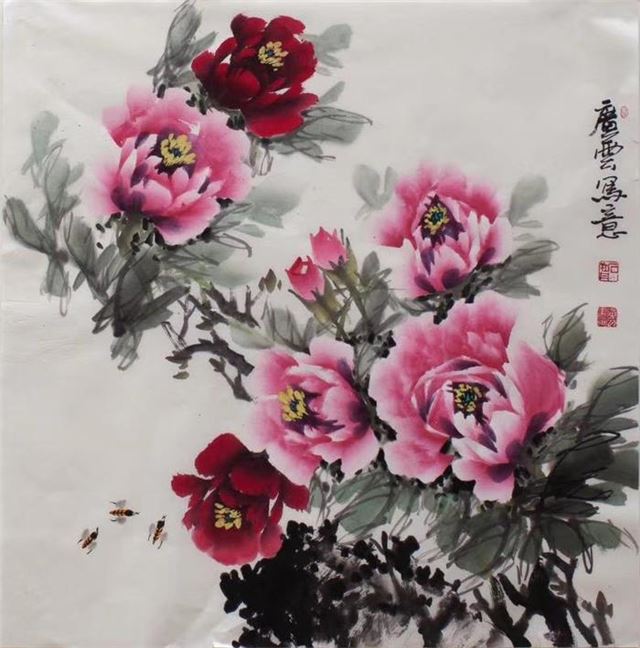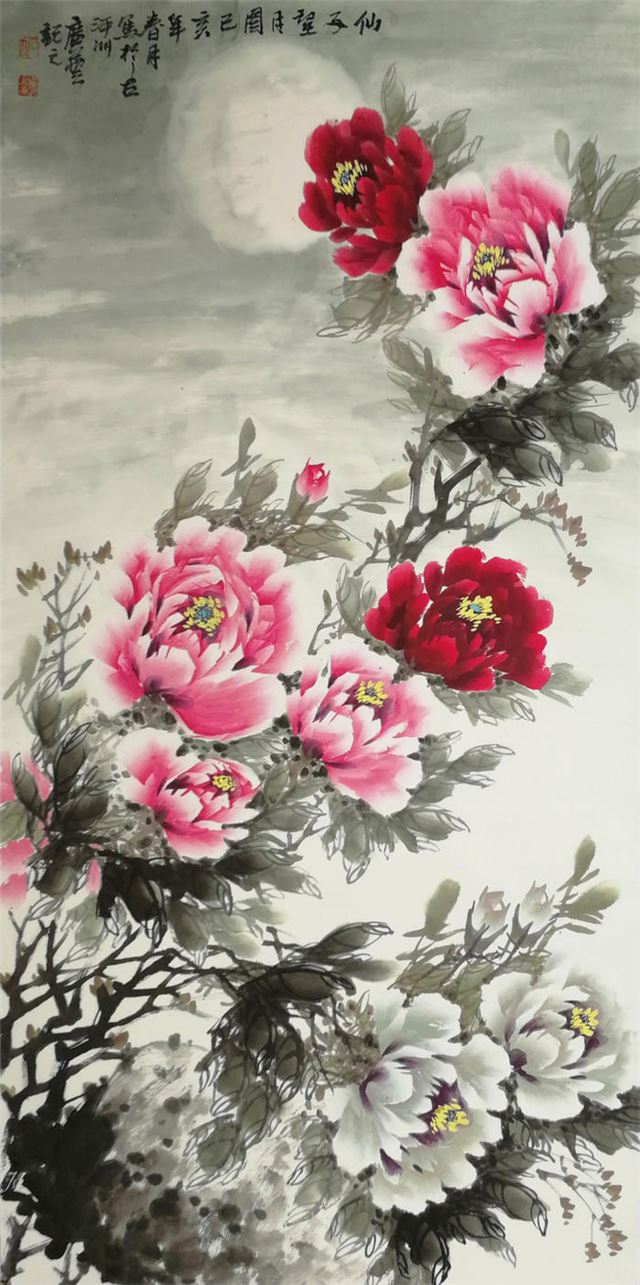 石广云:别名,石光云。男,汉族,1956年出生于临夏市。祖籍河南南阳,1980年毕业于张掖师专美术系(现河西学院)。临夏州美术馆(临夏书画院)副研究馆员,临夏州第四批专业技术拔尖人才。甘肃省书画研究院特聘画师、甘肃省河州紫斑牡丹书画院院长、中国工艺美术家协会会员、甘肃省美协会员。原临夏州美术家协会副主席、民盟甘肃省委艺术家工作委员会副主任,原民盟临夏市委副主委,临夏州第十届政协委员、临夏市第十、十一、十二届政协委员。石广云自幼学画,尤喜花鸟、山水、人物画等,几十年如一日,用画笔描绘他所深爱着的一方厚土和人文风情,抒发他内心的牡丹,往往令人情不知所起,而一往而深。花蕊的曼妙,花瓣的富饶,由内而外的诠释雍容典雅的含义。国画作品以写意见长,写意牡丹等作品立意新颖,构图饱满,色彩明快,对比强烈,中西融合,雅俗共赏,求画者众。刘禹锡在《赏牡丹》一诗中曾写道:“惟有牡丹真国色,花开时节动京城”,牡丹的美倾国倾城,懂得牡丹的美让人领悟花开时的轰轰烈烈,凋落时的从从容容。他在绘画的凝思中融汇前辈先人的技法,自得其乐,乐在其中。对于画家而言,有个人的风格才有艺术生命的道理。在继承先人传统画法的同时,他敢于摒弃一些绘画中不必要的程式化部分,创造性地运用工写结合,力求变化,用笔潇洒,表现力强,在强烈的视觉冲击中蕴藏着时代的寓意。而且,他还大胆地将现代的审美和中西造型元素融入其中,使其笔下的牡丹画既有西画之富彩,又有中国画之神韵,独具一格,神态各异,惟妙惟肖,似动非动,似静非静,悠然自得,让人不忍离去。石广云先生笔下的牡丹图,花团锦簇,绽放自如,不似小家碧玉的委婉含蓄,却饱含大家闺秀的雍荣贵气,有艳压群芳之姿,也有高洁典雅之质。出落大方,意蕴深长。一牡丹一世界,一枝一叶彰显 石广云先生对牡丹的用情之深,枝叶灵动,宛如多个妙龄少女娓娓谈心,让人心生爱慕与怜惜。