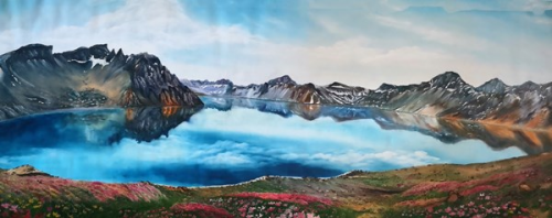 王强有很多代表性书画作品,备受瞩目。如油画作品《天池圣境》,刻画细致入微,令人如临其境,乘风归去,羽化成仙。龙虎山天师武龙说,“百神受职之所、三界仙灵之都”,就是此画构造的超然境界。2018年9月,荣宝斋在合肥举办文化艺术品拍卖会,《天池圣境》以32万元的价格最后竞拍成功。