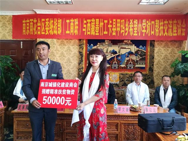 南京市城镇化建设商会自2013年成立以来,在李娜会长的带领下连续7年始终坚持从事脱贫攻坚公益活动,先后8次组织企业家去大别山帮助那里的贫困山区建设了10所希望小学,同时定向资助了60名贫困儿童,李娜会长被称为爱心大使,2018年8月商会带领企业家去青海黑马河地区帮助那里的村民传播野菜种植技术,并帮助他们形成销售产业链,2019年2月商会组织会员单位去中国最后一个原始村落昆明翁丁村给那里的老人孩子送去生活学习用品和现金,同时向村民传授新的文旅项目运营模式,教会他们脱贫攻坚的方法,并为他们搭建相关渠道,形成长期的帮扶体系。2019年5月去西藏墨卓贡嘎甲玛希望小学公益助学,捐物资8万元,同年8月去青海大通县技术扶贫,为那里了村民提供脱贫的生产技术支持。李娜会长还热心于残疾人事业前后帮助残疾人之家,捐赠物资10万元。