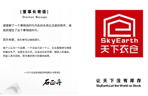 “为天地立心,为生民立命,为往圣继绝学,为万世开太平”石正丹作为一名有理想、有抱负的企业家担负着中国精神赋予的光荣使命。商业延伸至普世而言,从某种意义上说,商业担负支撑人类状况的理想的使命。他说道“让中国成为服装强国,是我一生的追求!”展望未来,不负时光不负人,石正丹将带领天下衣仓将用一生时间为恒心,用一生善心善念善行为积累,用终身去奉行成功路上作为初学者的谦卑!用不负生态为理念,打造天下衣仓全球“平价鞋服”迅销平台。
