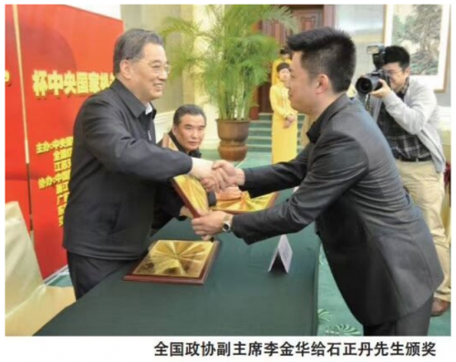 “天下兴亡,匹夫有责。”石正丹虽从小经商,但却心系社会,秉承着中国人大爱无疆的中国精神,非常热心慈善事业。他认为挣到的每一分钱都是社会的,自己所拥有的只是智慧与才情,回报社会才是回馈社会、奉献自我的唯一途径。他密切关注贫困山区地区孩子的教育,常年亲赴偏远山区慰问当地的学生。在早年创业初始,他就向云南贫困地区捐献现金、衣物价值六十多万元。在2002年“同一首歌”慈善晚会上,他又以个人名义当场捐献两百万元。从种种义举中,无不体现出石正丹作为一名企业家乐善好施的中国情怀,大爱无疆的中国精神。他不忘家乡人民的苦难,不忘孩子们对教育的渴求,他有着崇高的社会担当和责任意识,他愿意奉献愿意付出,让人发自肺腑地敬佩和敬仰!