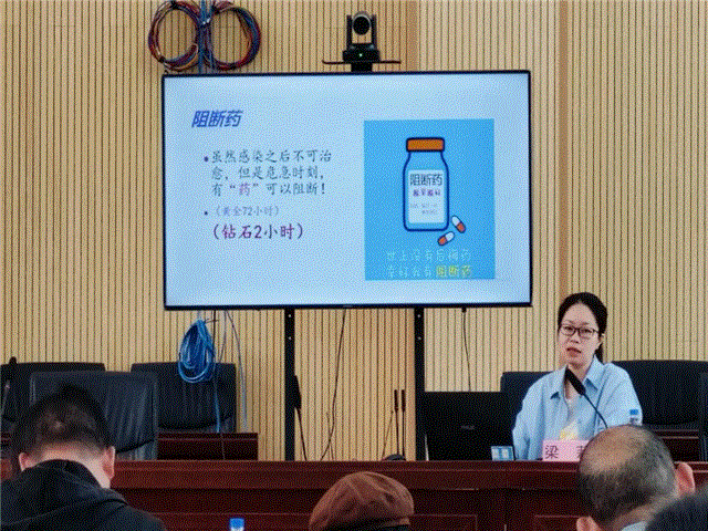 专家授课阶段,宜宾市疾病预防控制中心艾滋病防治科科长、副主任医师普及了艾滋病防治知识、强调了责任担当,并对南溪区艾滋病疫情进行了科学准确的分析,