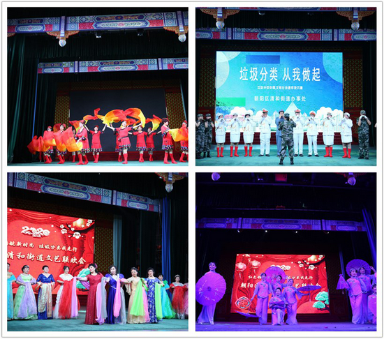 朝阳区清和街道“红色领航新时尚,垃圾分类我先行”垃圾分类文艺宣传演出正式开始。歌曲《祝福祖国》、《绿色军衣》,舞蹈《欢聚一堂》、《走在新世纪》、口琴合奏、诗朗诵等精彩节目轮番上演,优美的舞姿、有趣的剧情,吸引了全场观众的目光。