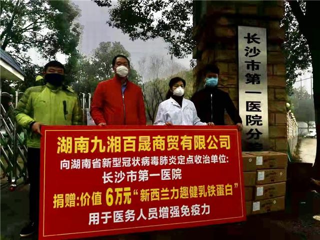 九湘百晟商贸董事长刘湘东表示,长沙市公共卫生救治中心、长沙市第一医院(北院)是新型冠状病毒感染肺炎省级、市级定点救治医院,医护人员奋战在疫情一线,他和公司团队看到广大医务工作者在辛勤无私的奉献,很想出一份力、表一份爱心,就连夜调集了这些物资,为白衣天使们做好营养保障,增强免疫力,共同抗击疫情。