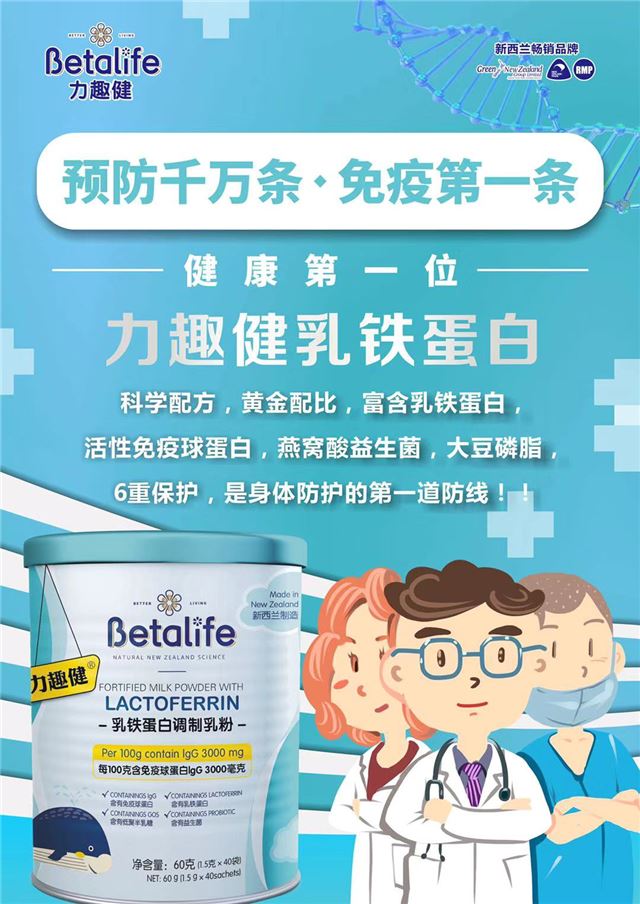 “这批新西兰力趣健乳铁蛋白是澳洲新西兰纯进口的高级营养品,其中含有的免疫球蛋白和益生菌,可有效补充营养,提高人体免疫力。”前不久,“中国最美逆行者钟南山院士也提出,目前对抗新型冠状病毒没有特效药。最好的治疗方法就是通过提高自身免疫力,与病毒做斗争。