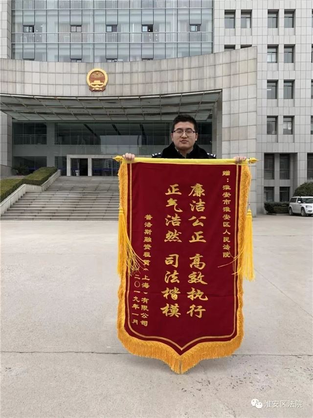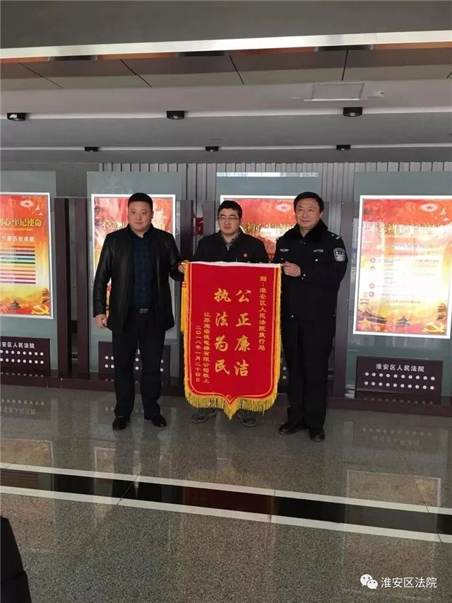 6月6日,对于淮安区法院执行干警王方敏来说是一个特殊的日子。这一天,既是他的结婚纪念日,又是他家宝宝的预产期。就在今天,这个重要的日子里,他收到了一份特殊的礼物——一面印有“一心一意为民办事,依法办案快速到位”的锦旗。