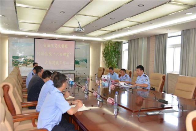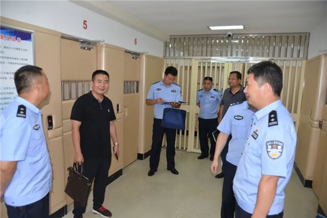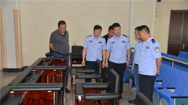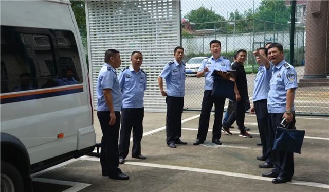 颜纯林副支队长一行首先实地查看了该院专用囚车、专用囚车库、专用羁押通道、专用桌椅、羁押室、监控室、装备室等“六专四室”建设情况,通过听取介绍、观看现场演示等方式全方位对该院“六专四室”达标建设总体情况进行了检查,随后在该院召开专题座谈会。