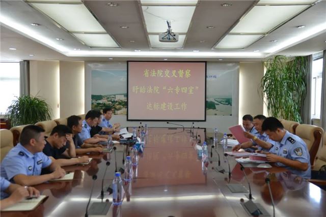 按照江苏省高院关于开展全省法院“六专四室”规划化建设交叉督察的要求,8月20日下午,由镇江市中院法警支队副支队长颜纯林等一行组成的督察组来到盱眙法院督察指导“六专四室”达标建设工作,盱眙法院党组成员、副院长张秀楷,淮安市中院法警支队副支队长徐晓东等全程陪同督察。